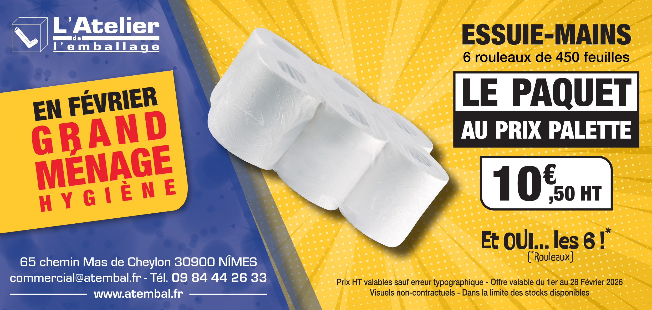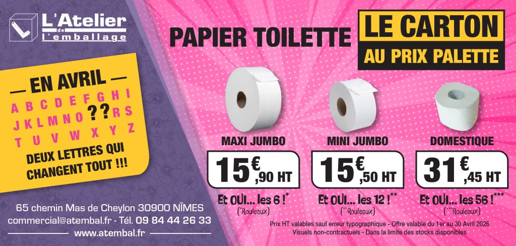 Plus qu’un simple grossiste, Atembal est votre spécialiste de l’emballage professionnel. Que vous recherchiez des solutions classiques (barquettes, serviettes, sacs…) ou des produits uniques que nous avons imaginés pour vous, nous avons tout ce qu’il vous faut !